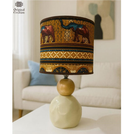 Lampe à poser abat-jour de haute gamme en wax pied figurines en céramique de la Collection Classique N°9
