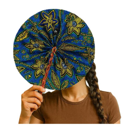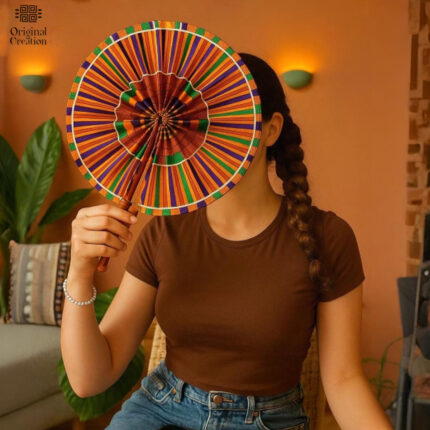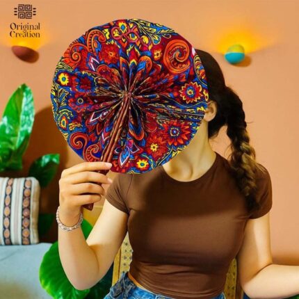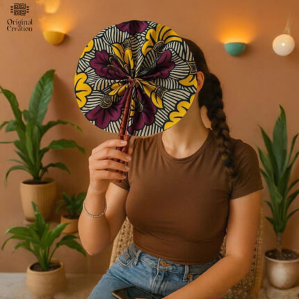 Éventail artisanal en wax pliable de haute gamme design japonais motif fleuris de la Collection happy summer N°33