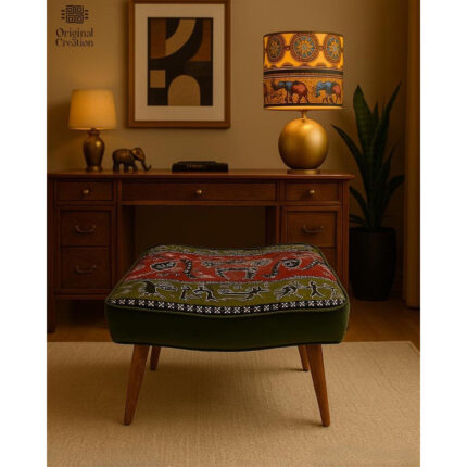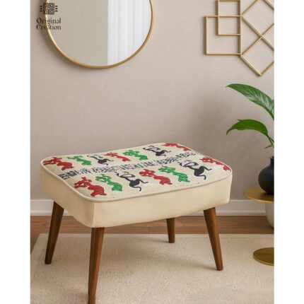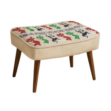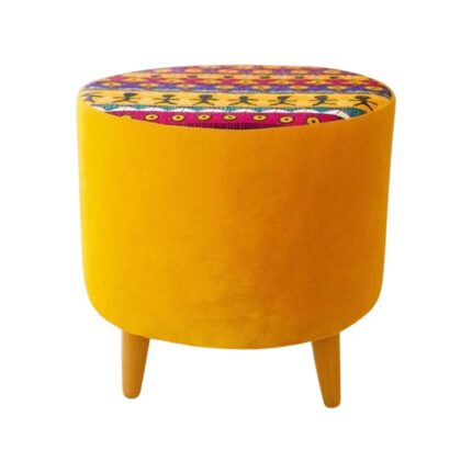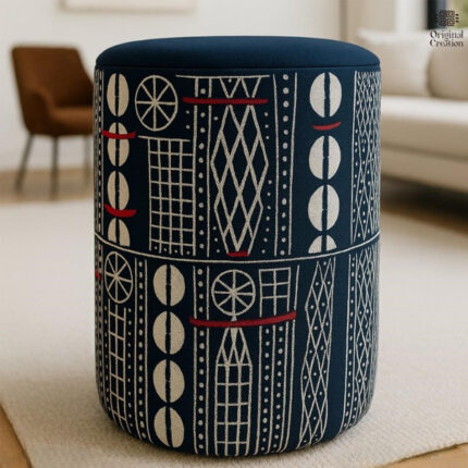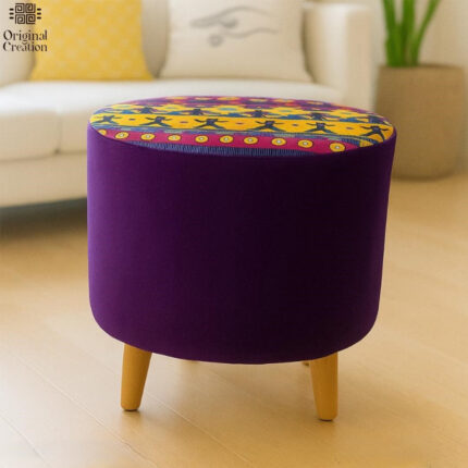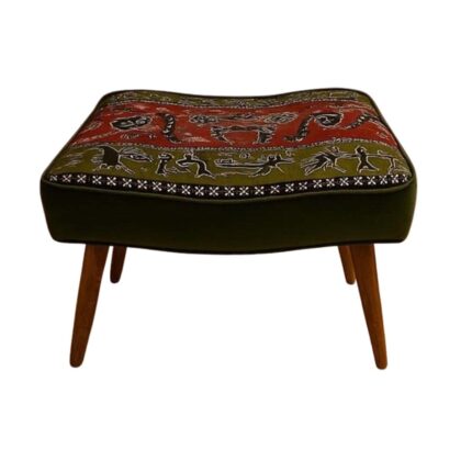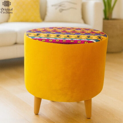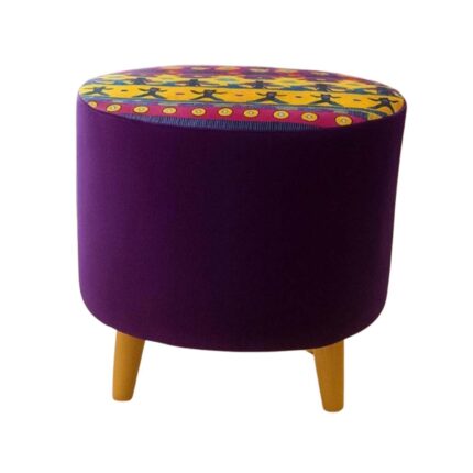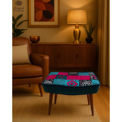 Tabouret Pouf Assise de Luxe rembourré haute gamme en wax pied en bois noble de style vintage en de la Collection Retro Art N°166